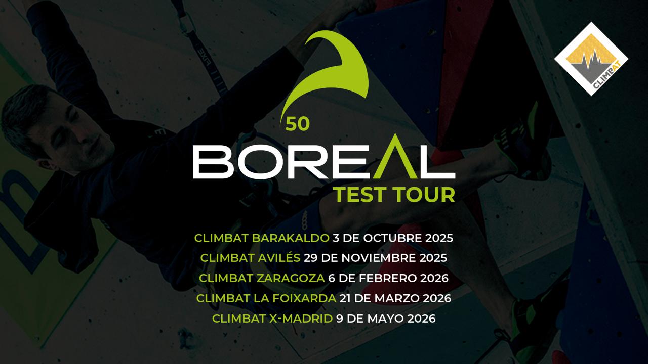 La marca española BOREAL, referente mundial en calzado de escalada y outdoor, celebra sus 50 años de historia con una iniciativa muy especial: el BOREAL TEST TOUR, una gira por cinco centros Climbat donde escaladores y escaladoras podrán probar gratuitamente los pies de gato de la marca y adquirirlos con descuentos exclusivos.