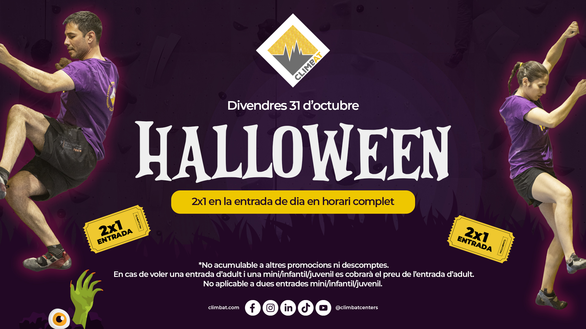 Celebra Halloween escalant als centres Climbat amb una promoció especial! El dijous 31 d’octubre, gaudeix del 2×1 en l’entrada de dia en horari complet. Una oportunitat perfecta per descobrir l’escalada o repetir l’experiència amb qui tu vulguis.
